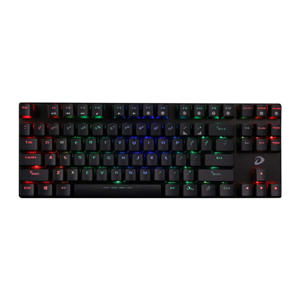 Như các bạn có thể thấy, DareU EK880 lấy nguyên xi bộ khung và thiết kế tenkeyless tiêu chuẩn từ DK87. Lớp vỏ nhựa mặt trên đen nhám và viền xung quanh được đánh bóng. Bàn phím có layout 87 key tiêu chuẩn ANSI cực kỳ dễ sử dụng và thay thế keycap. Hệ thống LED RGB chính là điểm khác biệt chính giữa DareU EK880 và phiên bản trước, một nâng cấp “hợp thời” để có thể cạnh tranh với những đối thủ thuộc hàng gạo cội như Fuhlen M87s hay Geezer GS4 RGB.